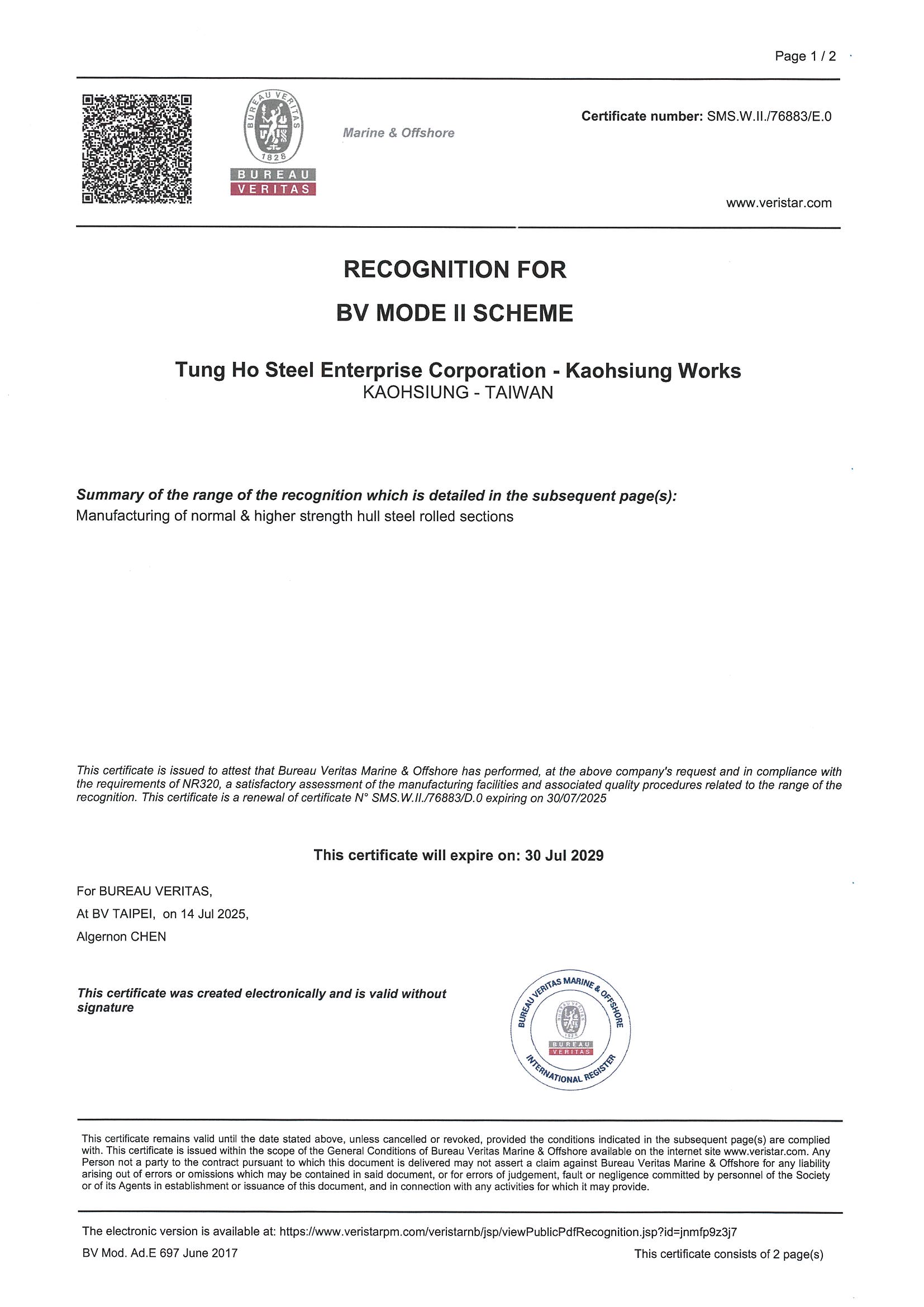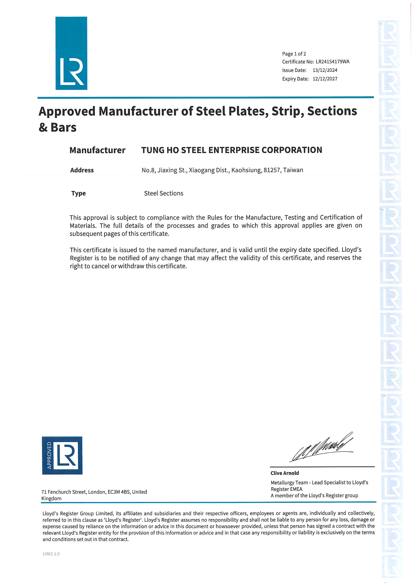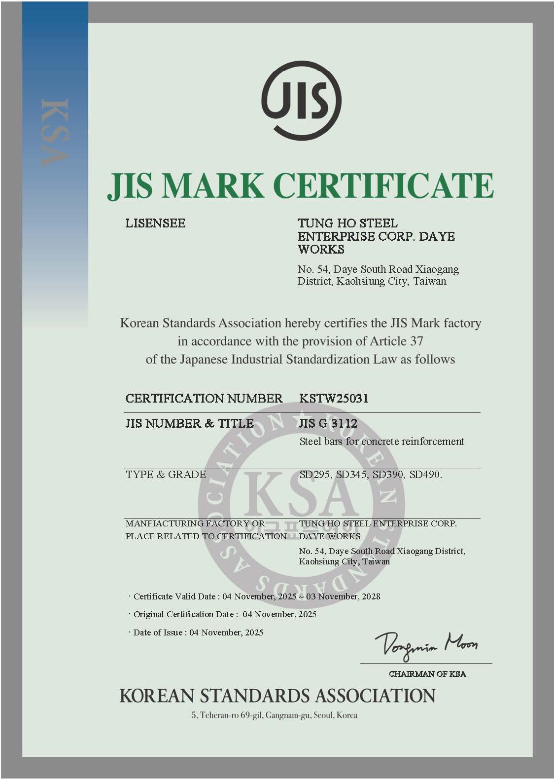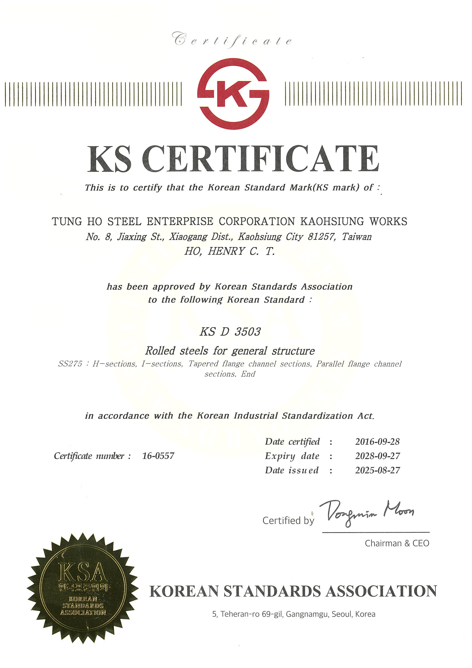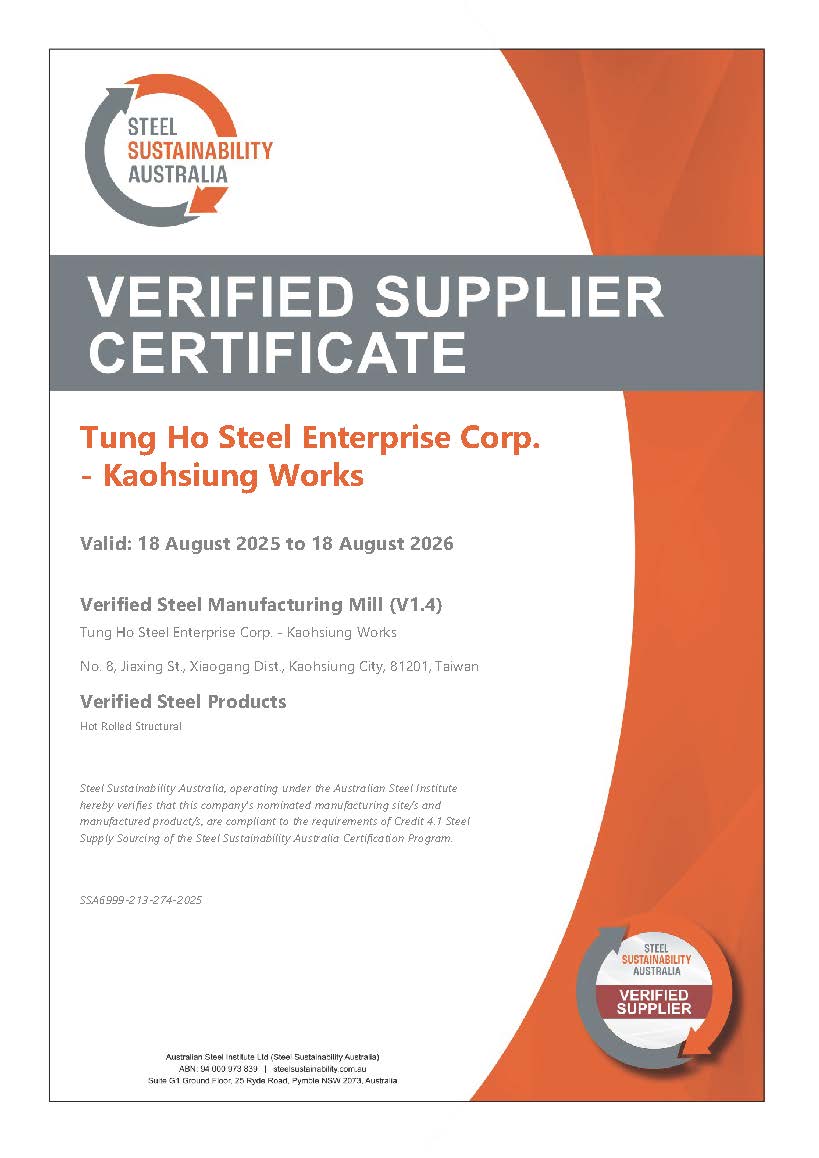 STEEL SUSTAINABILITY AUSTRALIA VERIFIED SUPPLIER CERTIFICATESSA Certificate of Compliance - Tung Ho Steel Enterprise Corp. - Kaohsiung Works-2025(1).pdf -