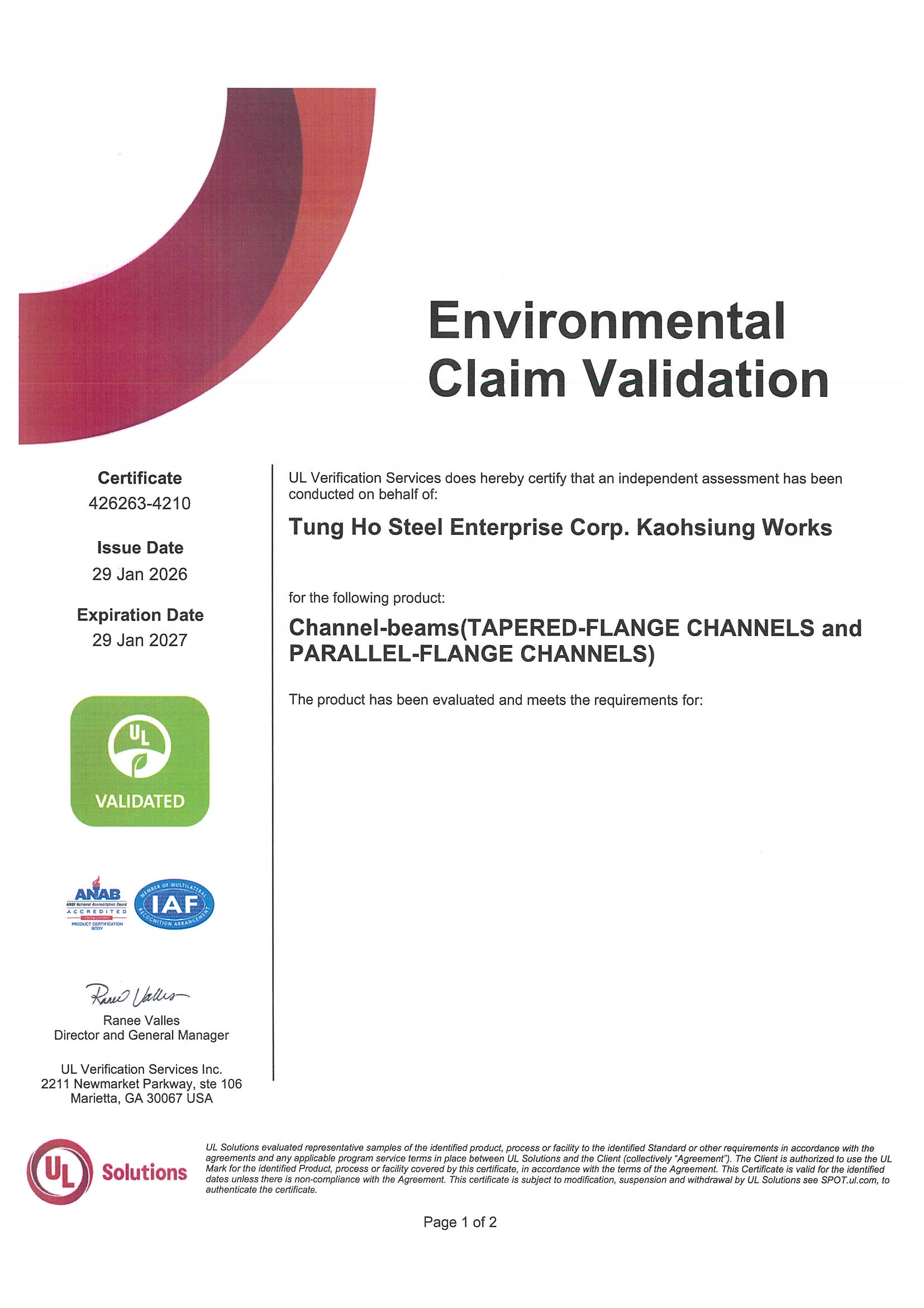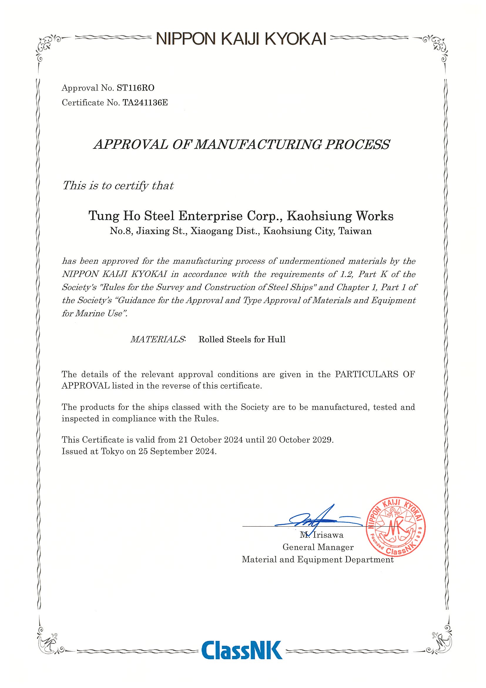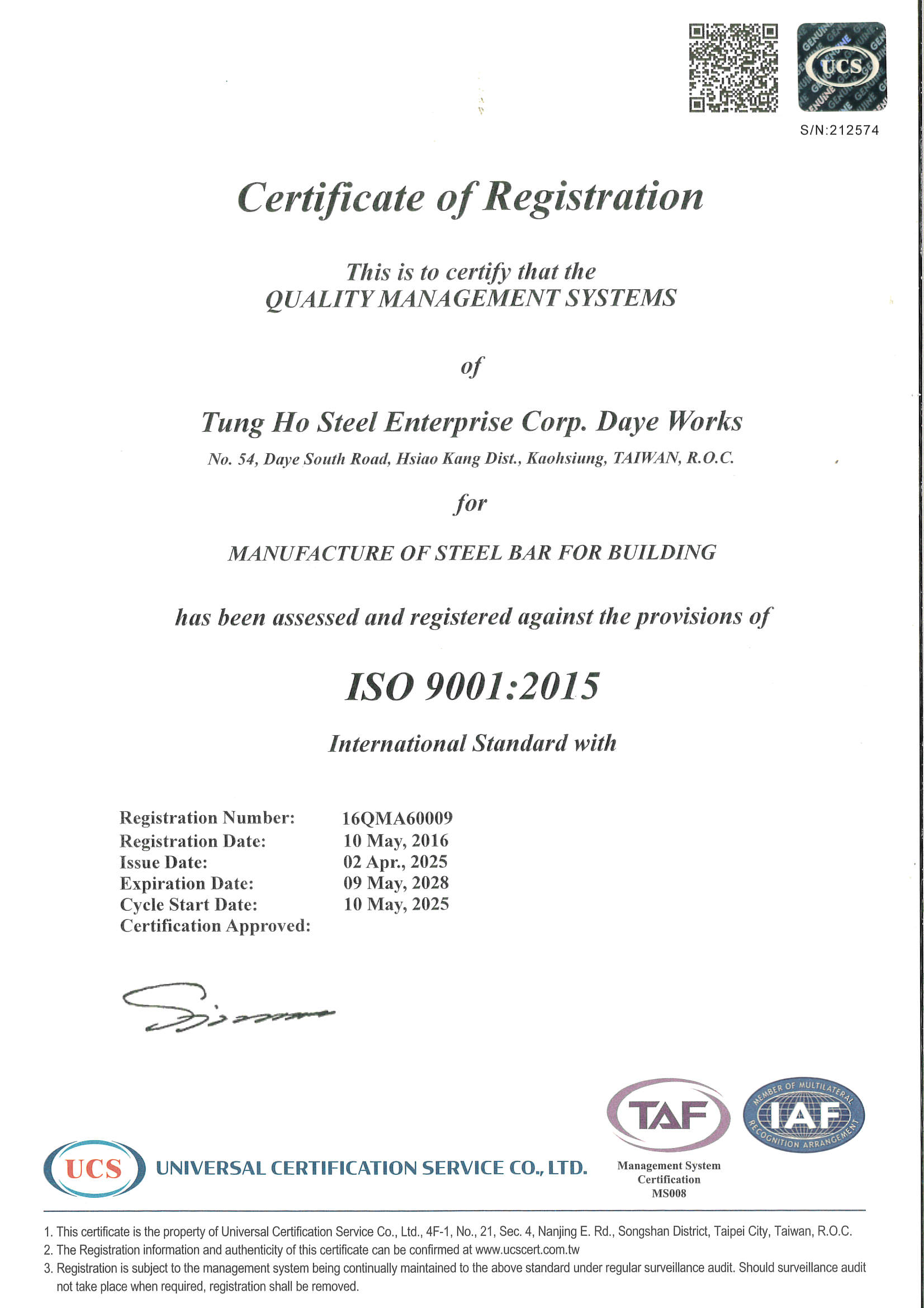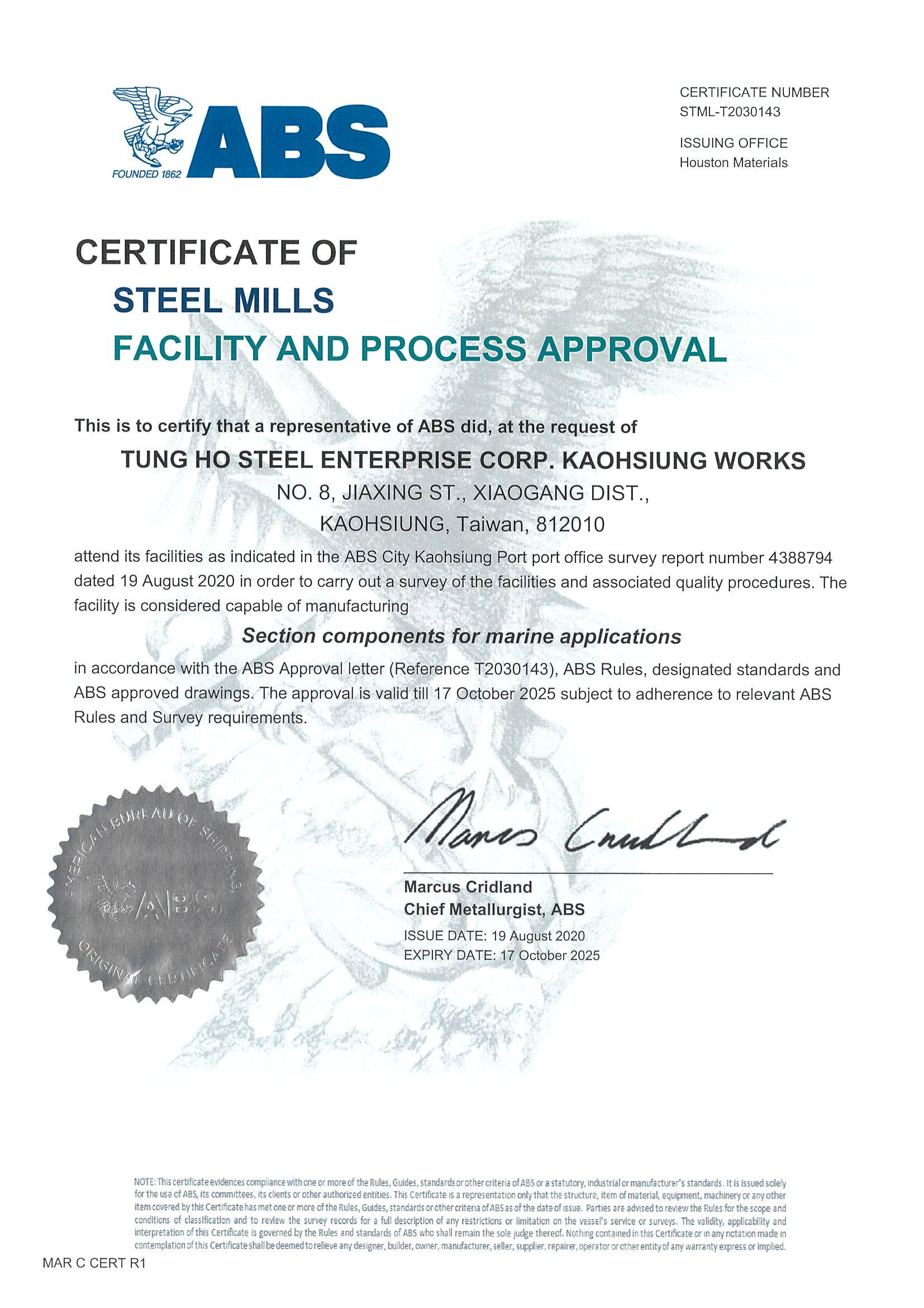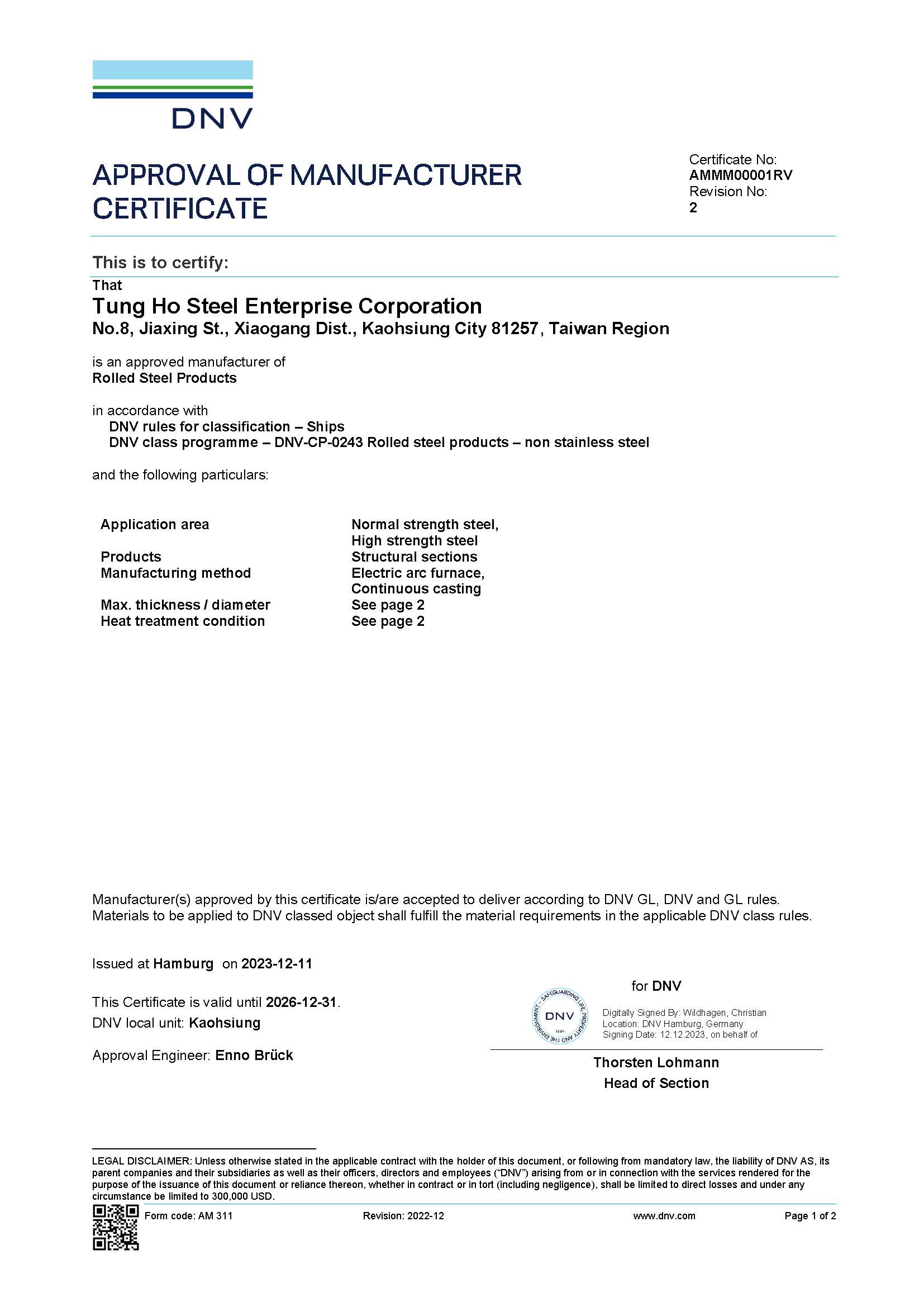STEEL SUSTAINABILITY AUSTRALIA VERIFIED SUPPLIER CERTIFICATESSA Certificate of Compliance - Tung Ho Steel Enterprise Corp. - Kaohsiung Works-2025(1).pdf -