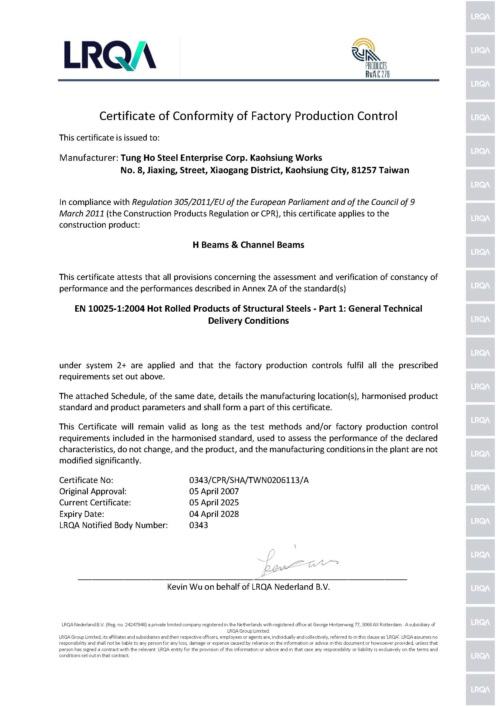 (CE MARK FOR LR) CE Marking For Construction Products Regulation certified with Lloyd's RegisterLR - CPR 移轉證書 (2028.04.04 到期)(1).pdf -