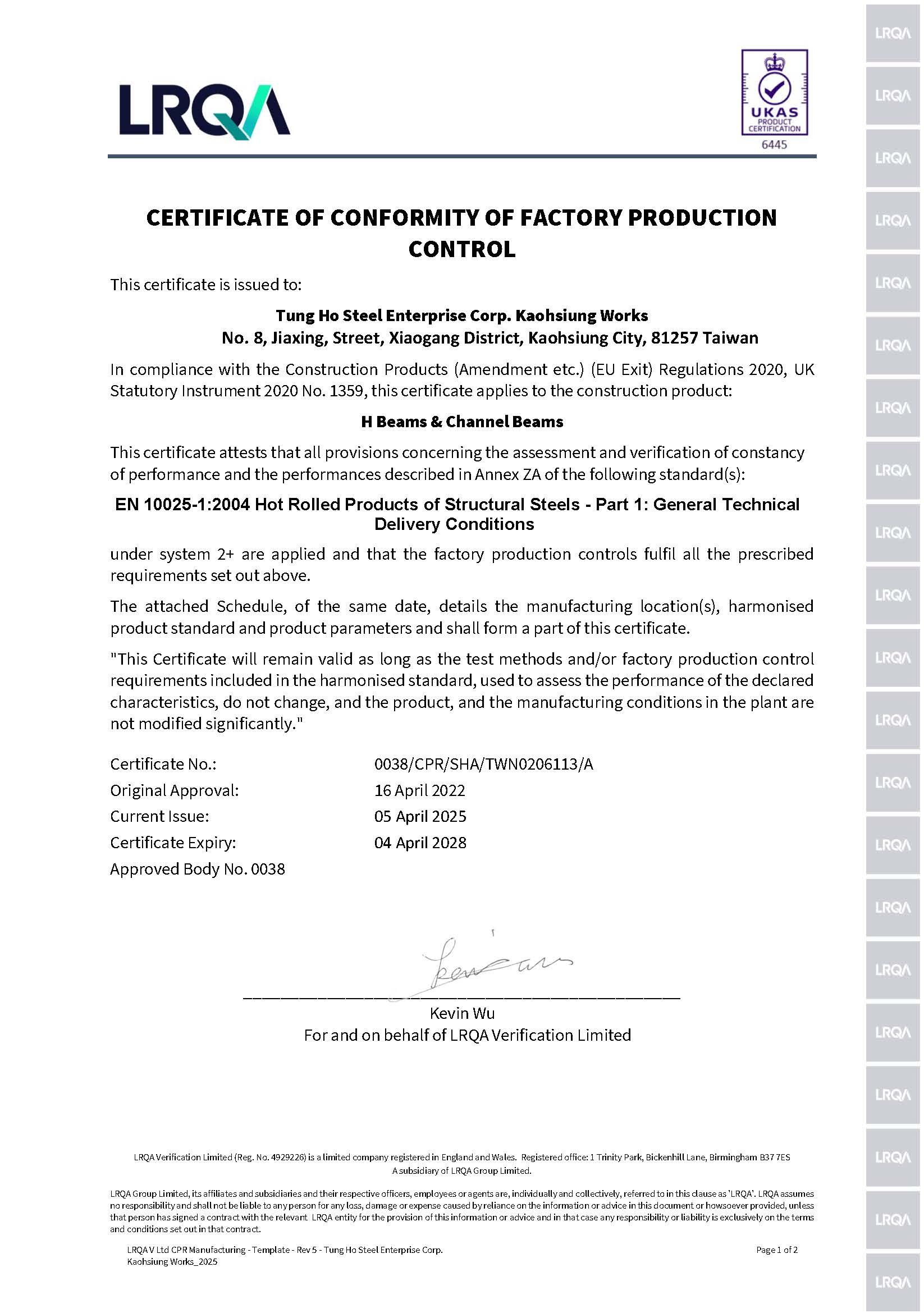 (UKCA MARK FOR LR) UKCA Marking For Construction Products Regulation certified with Lloyd's RegisterLR - UKCA CPR 移轉證書 (2028.04.04到期)(2).pdf -