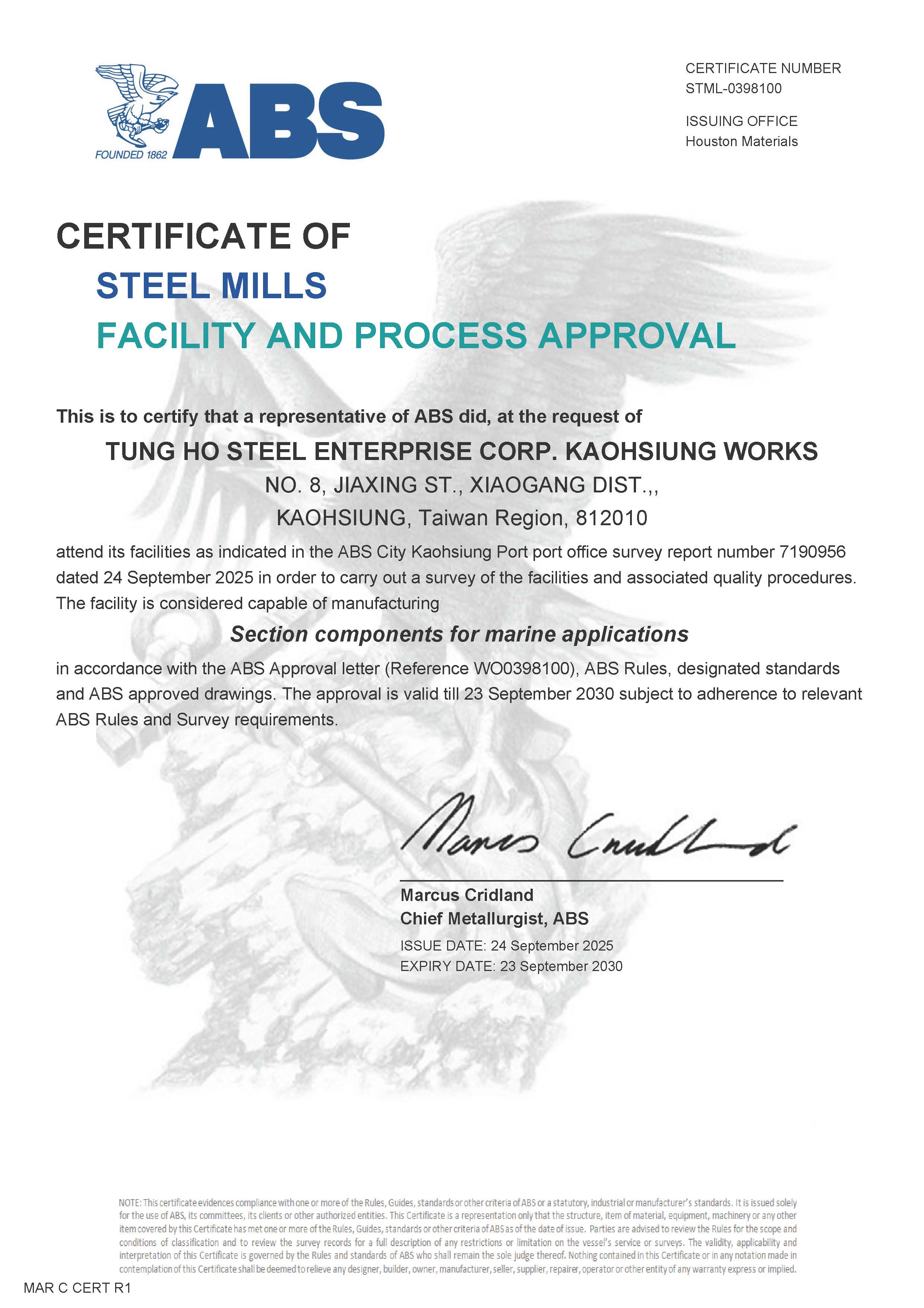 SSA Certificate of Compliance - Tung Ho Steel Enterprise Corp. - Kaohsiung Works-2025.pdf